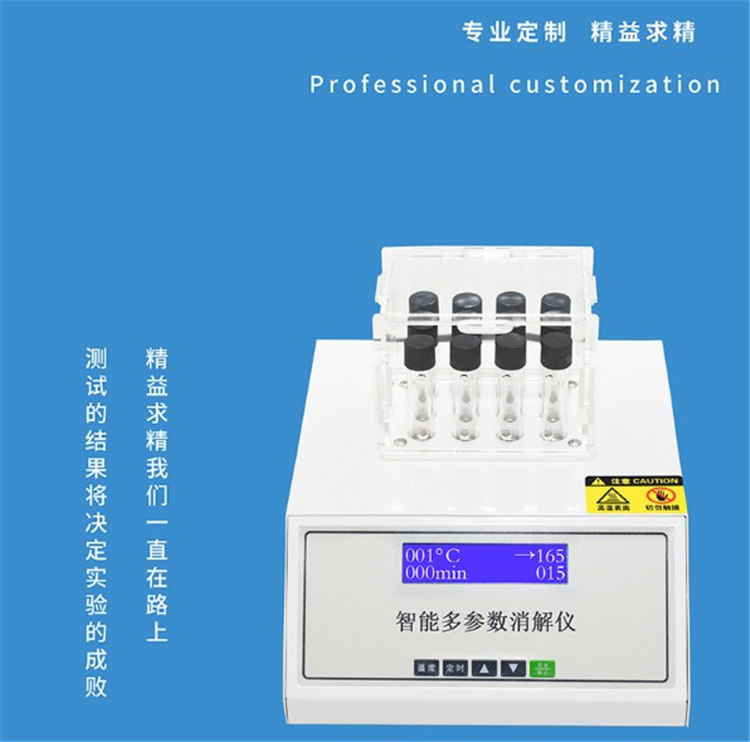 JH-YX系列COD快速消解儀是一種快速測(cè)定化學(xué)耗氧量的加熱裝置。可進(jìn)行COD、總磷、總氮等樣品消解預(yù)處理。該儀器可以自動(dòng)完成恒溫計(jì)時(shí)時(shí)間,時(shí)間設(shè)定1-999分鐘,溫度恒定時(shí)間到達(dá)后儀器具有自動(dòng)聲報(bào)警功能,自動(dòng)關(guān)機(jī),無(wú)需人工參與。溫度漂移小,恒溫精度高。它采用PID溫控器,時(shí)間控制器、升溫速度較快,溫度緩沖小、溫度恒定均勻等特點(diǎn),操作簡(jiǎn)便,是一種實(shí)驗(yàn)手段儀器化產(chǎn)品。同現(xiàn)行的重鉻酸鉀法測(cè)定化學(xué)需氧量的回流裝置相比,具有體積小、節(jié)水、節(jié)電、恒溫性能好等優(yōu)點(diǎn)。適用于加熱快速測(cè)定化學(xué)耗氧量COD,所得數(shù)據(jù)與經(jīng)典方法對(duì)應(yīng),可廣泛用于環(huán)保、高等院校、醫(yī)藥、衛(wèi)生、食品、自來(lái)水、化工、污水處理、造紙、石化、冶金、印染等行業(yè),使COD的示值測(cè)量高效、快速、經(jīng)濟(jì)。