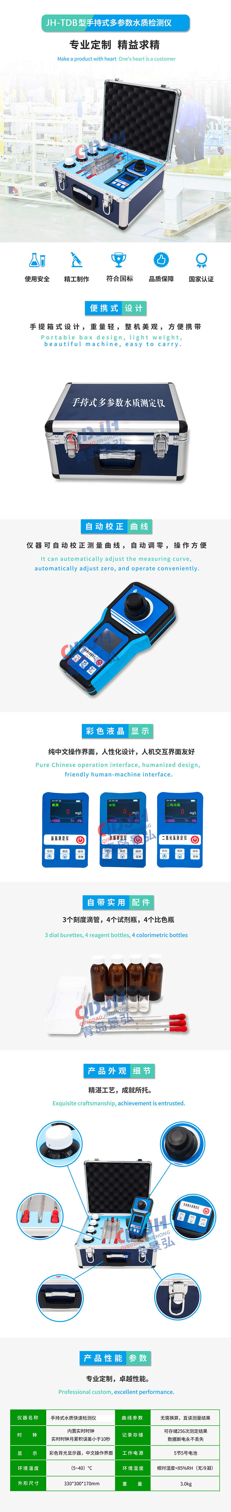 該儀器為便攜手持式設(shè)計(jì),高精度光電檢測(cè)系統(tǒng),具有彩色液晶顯示器、自動(dòng)調(diào)零、濃度直讀、曲線存儲(chǔ)、自動(dòng)打印等特點(diǎn),儀器操作簡(jiǎn)便,人機(jī)交互式操作,使用者無(wú)需復(fù)雜的專業(yè)知識(shí)即可應(yīng)用本產(chǎn)品。,在滿足用戶日常實(shí)驗(yàn)室及野外水質(zhì)測(cè)定工作的同時(shí)又兼具操作舒適、測(cè)定可靠等優(yōu)點(diǎn)。